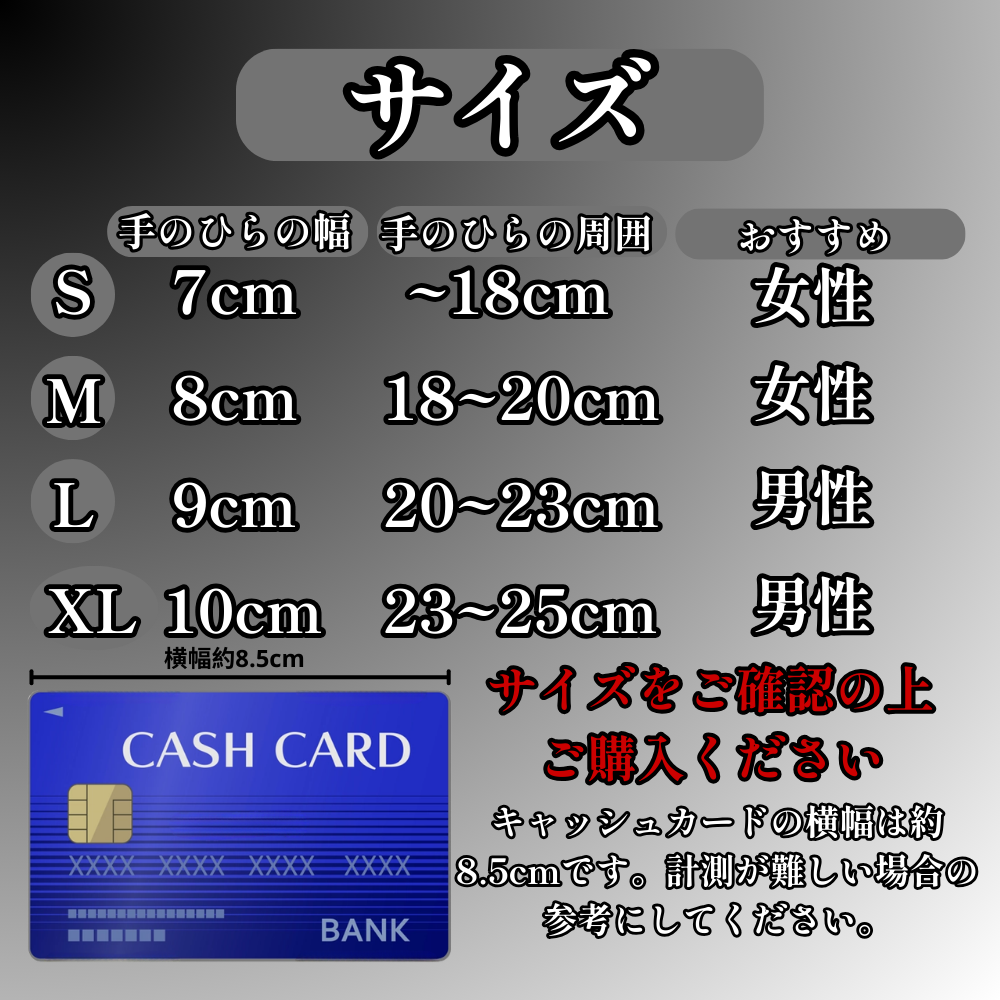 手のひら周囲を基準に選べば、よりフィット感が高まります。